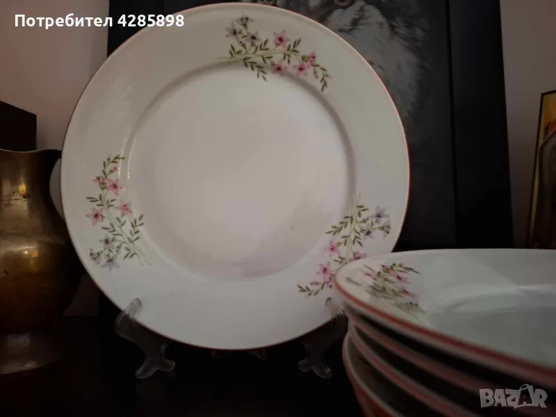 Порцеланови чинии.Розова незабравка на Изида.Червен кант.