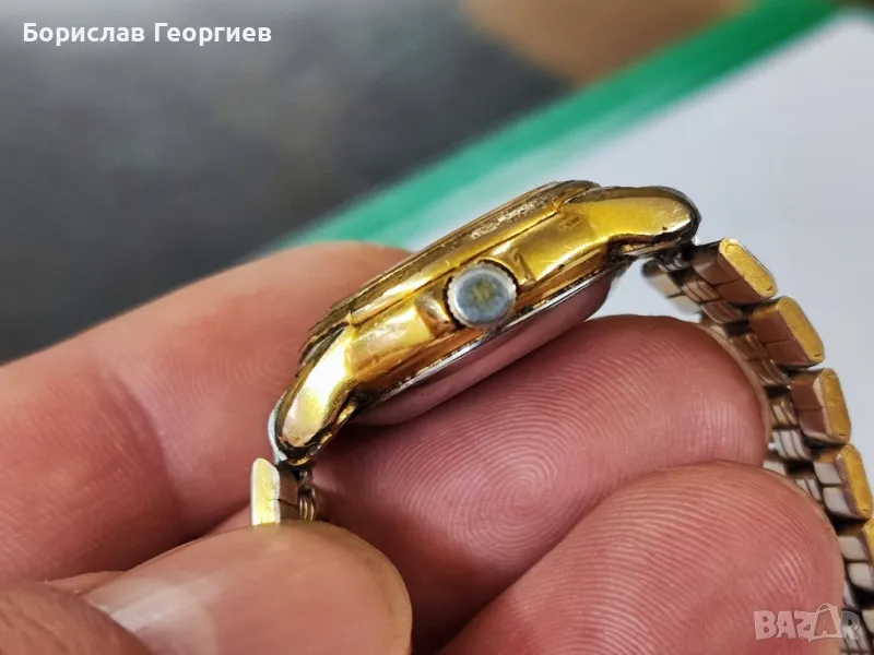 Часовника е в добро работещо състояние,но касата е със следи от употреба.Стъклото и циферблата са без забележки.