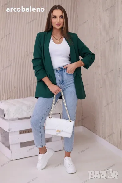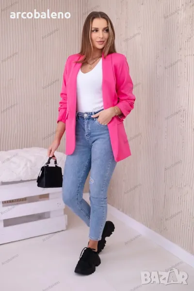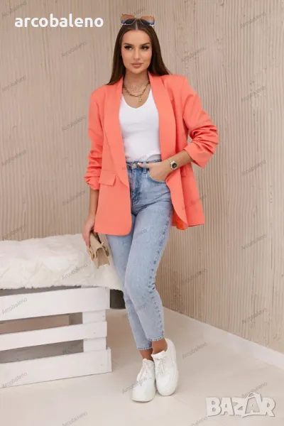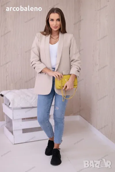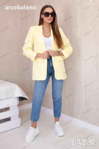 Представяме ви елегантно сако. Сако без закопчаване с предни ревери. Този модел ще бъде страхотно предложение за много видове силуети, придавайки на всеки стайлинг непринудена елегантност. Той е основата на всеки гардероб и елемент от стайлинг за специални задачи - за всеки сезон и за всеки повод. Сакото е изработено от висококачествен материал. Сакото е с подплата. Размерът е универсален и ще бъде подходящ за дами с размери S, M и L.