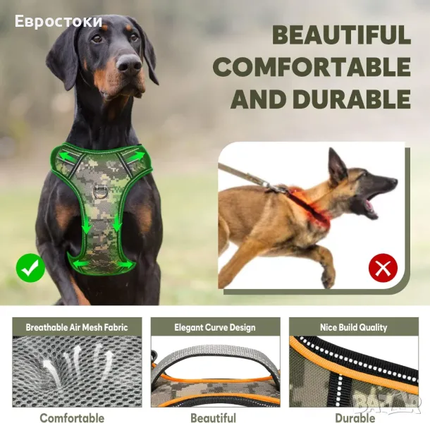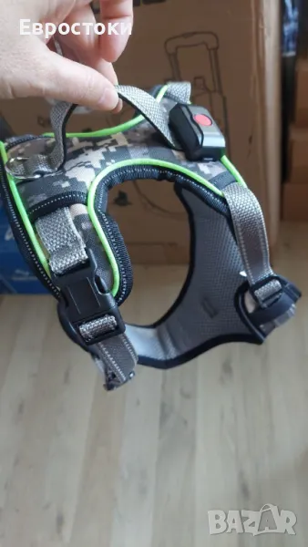 BiPawTi Светещ колан за кучета без дърпане за нощни разходки, с дръжка, акумулаторен. Лек Регулируем, зелен. L, M.