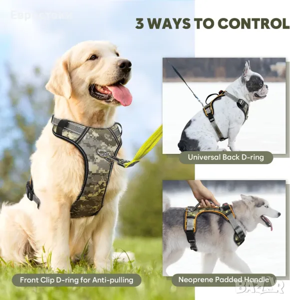 BiPawTi Светещ колан за кучета без дърпане за нощни разходки, с дръжка, акумулаторен
