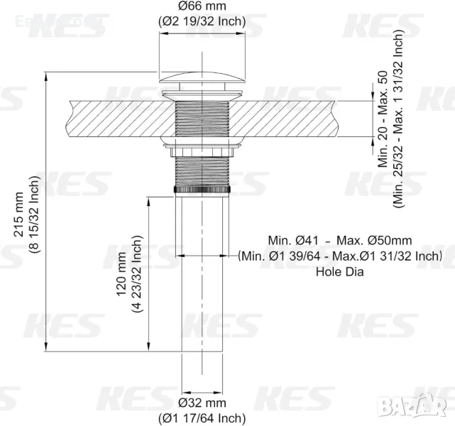 Стандартен сифон 44 mm: подходящ за отвори на мивки с диаметър от 41 mm до 50 mm. Макси. Дебелина на мивката: 50 мм, мин. : 20 mm Подходящ за всяка дренажна арматура без преливник.
