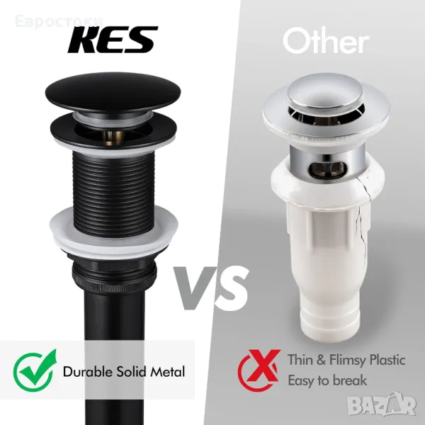 KES S2008D-BK Изскачащ метален дренажен фитинг за мивка. Черен дренажен клапан без преливник
