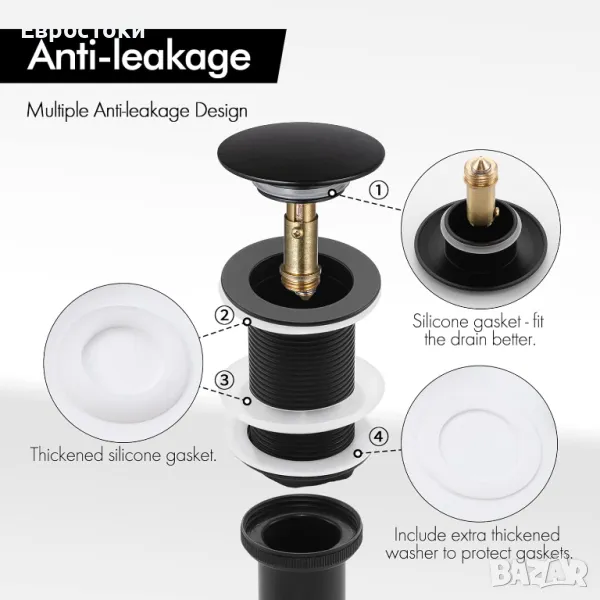Дренажната пробка е изработена от месинг и висококачествена неръждаема стомана 304 и предпазва от корозия и ръжда във влажна среда.
