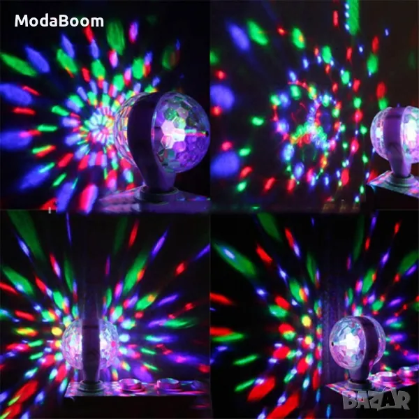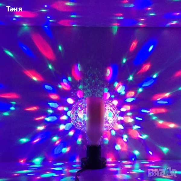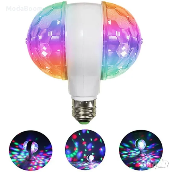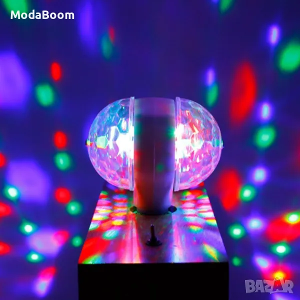 Диско LED лампа, въртяща се крушка - автоматично въртене с кристални топки → Обява 48817059