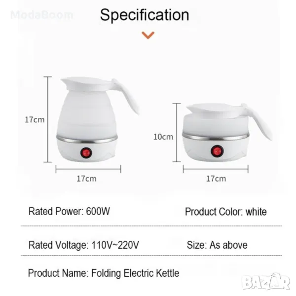 Сгъваема електрическа кана за пътуване. Преносима кана 0.6 литра