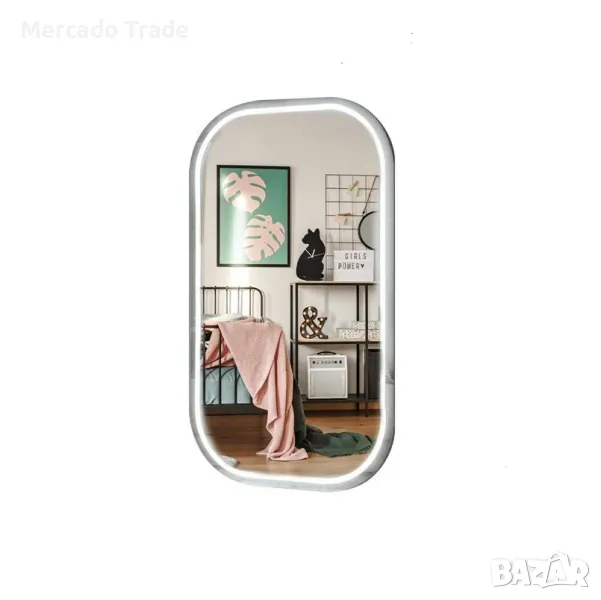 Декоративно огледало Mercado Trade, LED неонова рамка, Правоъгълно, Бяло