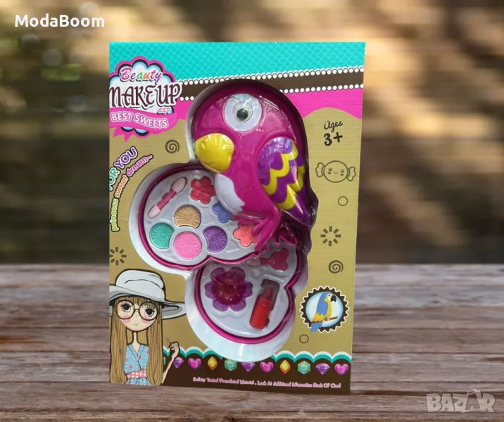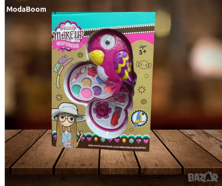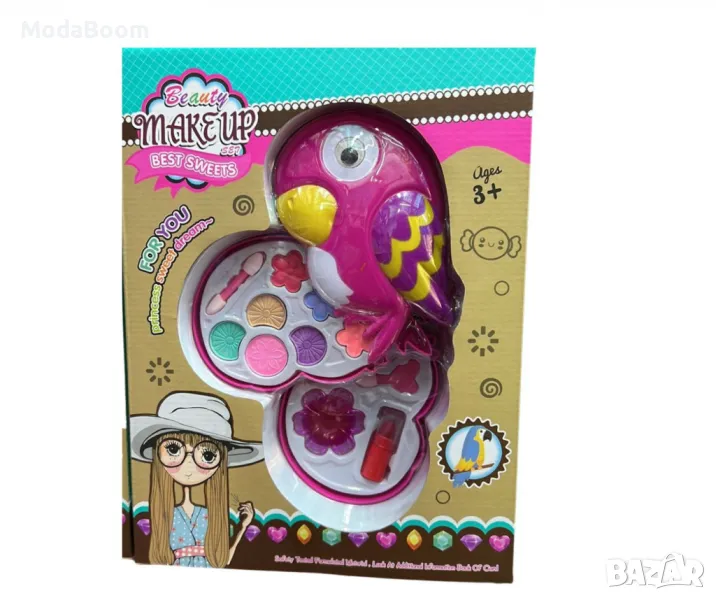 Детски сет козметика за малки принцеси с форма на папагалче, който включва всичко необходимо за забавни и безопасни игри с грим. В комплекта ще откриете: