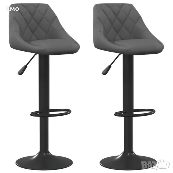 Бар табуретки, 2 бр, тъмносиви, кадифе