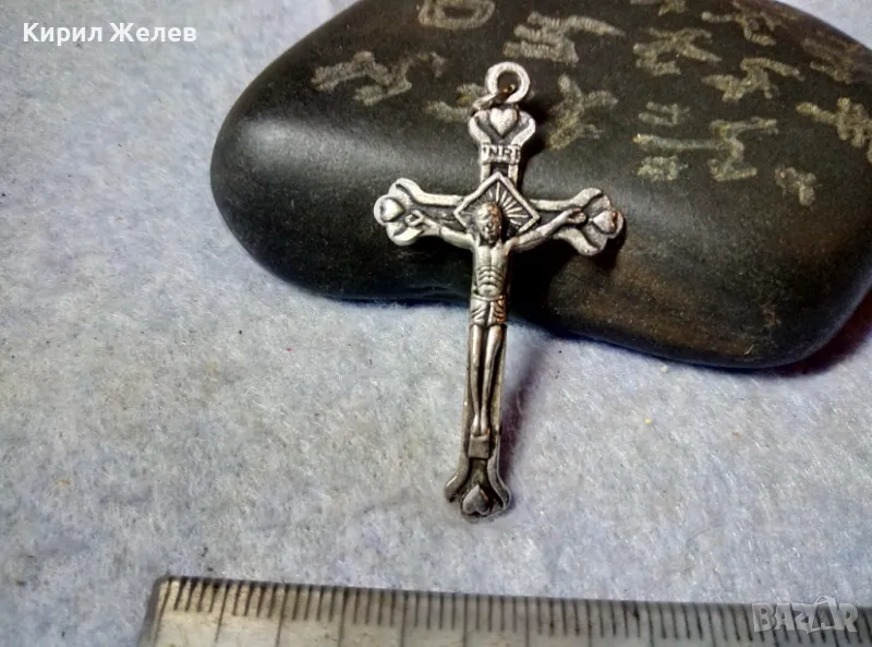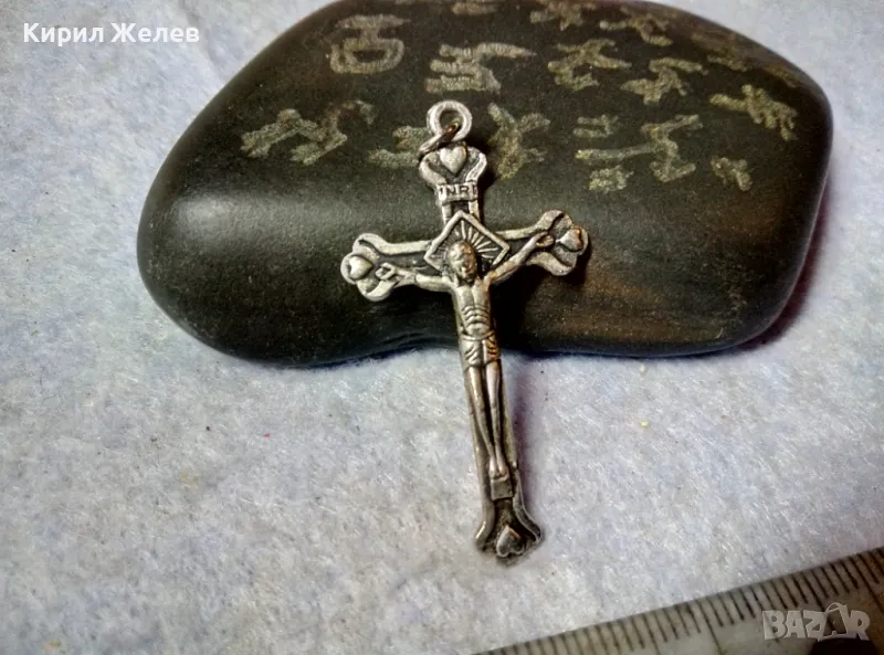 JERUSALEM СРЕБРИСТО НАГРЪДНО МЕТАЛНО КЛАСИЧЕСКО РАЗПЯТИЕ КРЪСТ КРЪСТЧЕ СПОМЕН от ЙЕРУСАЛИМ 19857