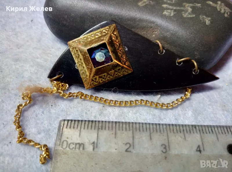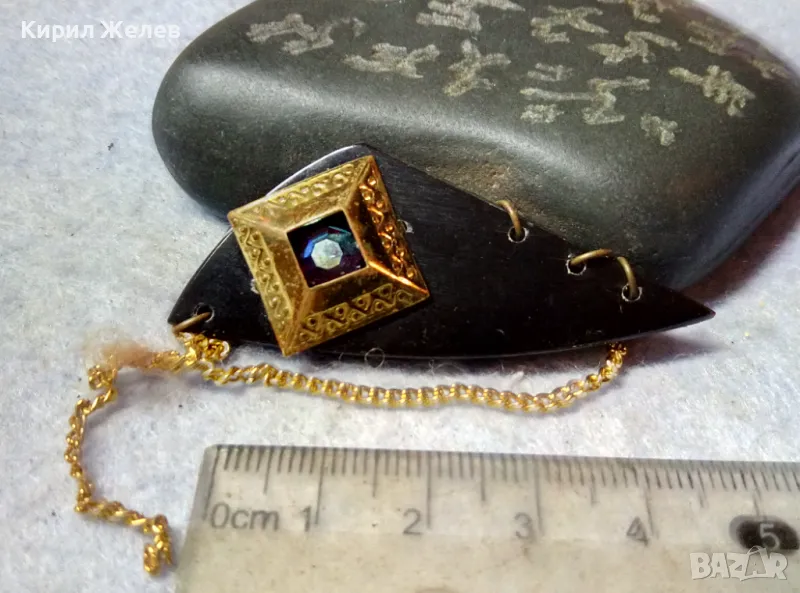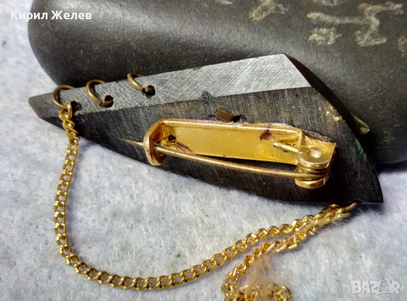 Стара РЕТРО АР НУВО СТИЛ ПОЗЛАТЕНА СКЪПОЦЕННА БРОШКА от РОГ РЪЧНА МАЙСТОРСКА ИЗРАБОТКА 39263