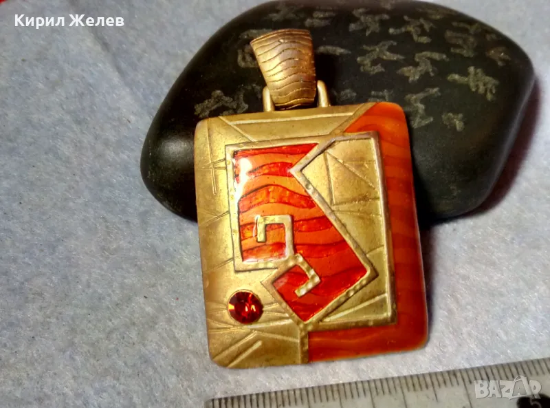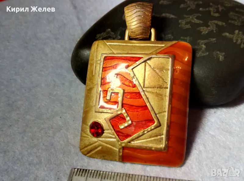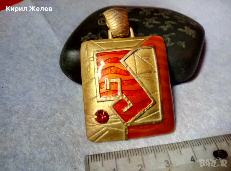 РАЗКОШЕН СТАР ЕМАЙЛИРАН ПОЗЛАТЕН МЕСИНГОВ ВИНТИДЖ АРТ МЕДАЛЬОН с ФАСЕТИРАН ГРАНАТ 60731 → Обява 48818847