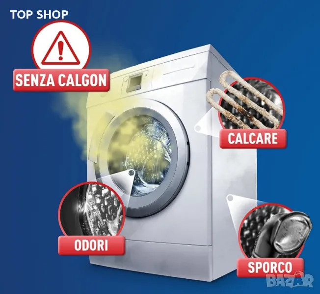 Котлен камък, мръсотия и остатъци от препарат се натрупват зад барабана, във филтъра и в тръбите. Това влошава работата на машината и намалява ефективността от прането.