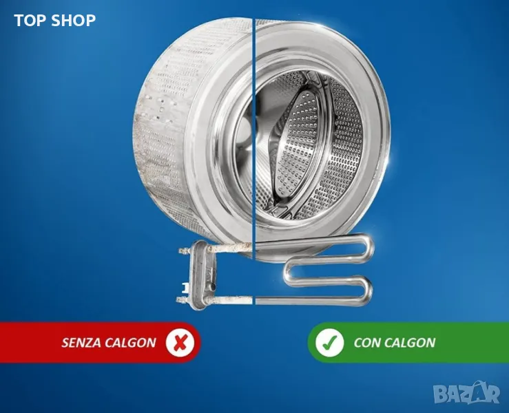 Новата формула на Calgon 2in1 има двойно действие: Благодарение на неутрализиращото действие на 100% защита от котлен камък, Calgon предпазва всички важни части на пералнята.