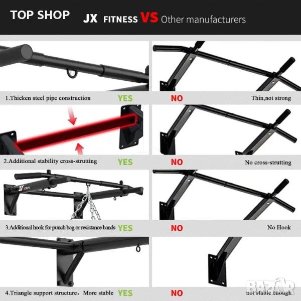 JX FITNESS щанга за издърпване, монтирана на стена щанга за брадичката, боксова торба за домашен фитнес и тренировъчна кука TRX, скоба за упражнения, щанга за тренировки за горната част на тялото