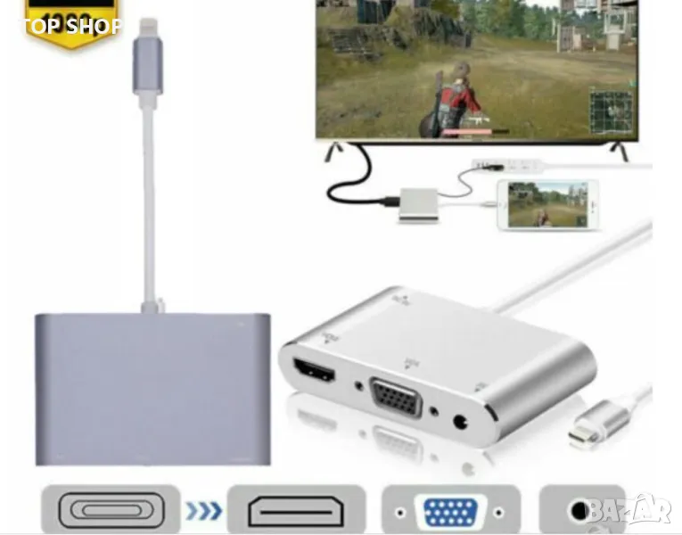 Lightning към HDMI VGA AV адаптер, 3 в 1 алуминиев, HDMI VGA AV адаптер за iPhone към телевизор
