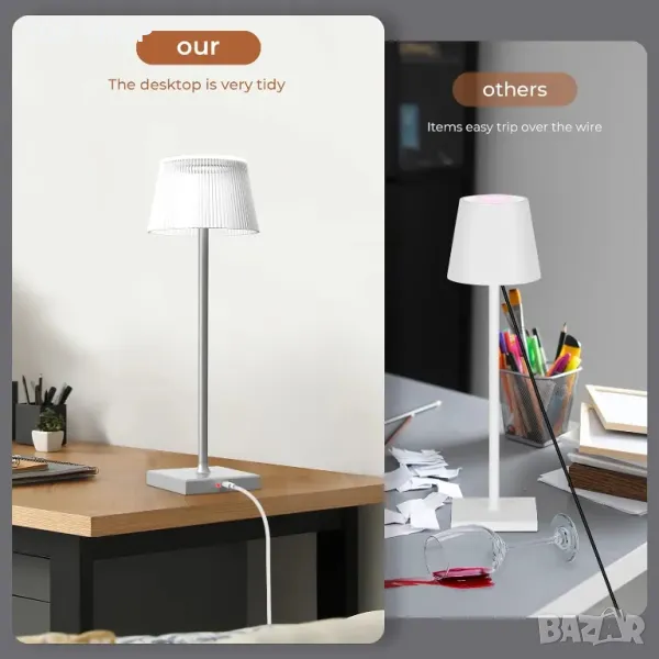 Wired or wireless conversion: the power supply design on the base can be used as a normal desk lamp when charging and can be used for 16 hours at 70% brightness when fully charged.