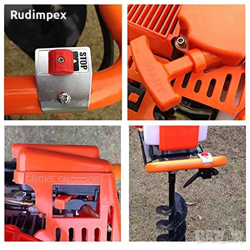 Бензинов свредел за прибиване 52 cc + свредло за пробиване на дупки с диаметър 100мм