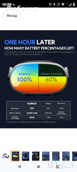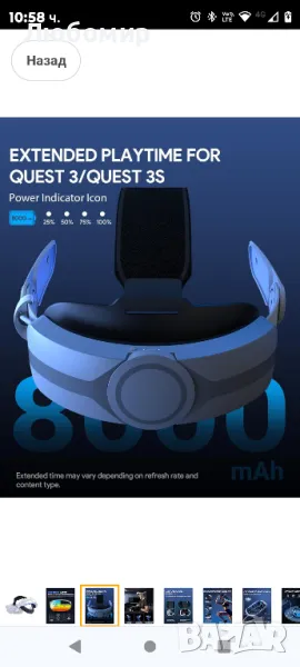 Каишка за глава Aubika с бързо зареждане за Meta Quest 3S/Quest 3 с вградена батерия 8000 mAh, смяна на каишка Elite, сгъваеми и регулируеми аксесоари.Защо Quest 3S/Quest 3 се нуждае от бързо зареждане: Тъй като производителността на Quest 3S/Quest 3 е значително подобрена, предишното решение за зареждане, пригодено за QUEST 2, далеч не беше адекватно за енергийните нужди на Quest 3S/Quest 3. Когато зареждането скоростта не може да съответства на скоростта на консумация на енергия на слушалките Quest 3S/Quest 3, възниква изтегляне. В момента повечето ленти за батерии изтощават живота на батерията, но само AUBIKA не. Решенията за бързо зареждане спестяват живота на батерията на Quest 3S/Quest 3. Смятаме, че това трябва да прави каишката за батерия.Удължено време за възпроизвеждане с 8000mAh батерия: каишка Aubika за Meta Quest 3S/Quest 3, вградена 8000mAh акумулаторна батерия за захранване на подобрената производителност на Quest 3S/Quest 3. Страхотен заместител на елитна каишка, тъй като капацитетът на батерията й е 3 пъти повече от официалната елитна каишка . Можете да наблюдавате състоянието на батерията в реално време чрез иконата на индикатора за захранване.Сгъваема и регулируема: Сгъваемата на 180° странична лента ви позволява да завъртите VR слушалките свободно, в случай че трябва да проверите заобикалящата ви среда, почивка за очите ви или за очила, за да премахнете мъглата. Можете да регулирате копчетата на колелата, за да паснат на различни обиколки на главата, което прави Quest 3S/Quest 3 подходящ за цялото семейство.Голям комфорт с контрабаланс: Теглото на задната батерия умело балансира теглото на Quest 3S/Quest 3 и намалява натиска на лицето, което значително подобрява увиването. Горната лента е широка и пълна с мека гъба, осигуряваща по-добро омекотяване, еластичност и намаляване на теглото отпред