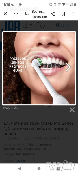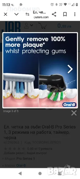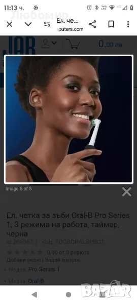 Ел. четка за зъби Oral-B Pro Series 1, 3 режима на работа, таймер, черна