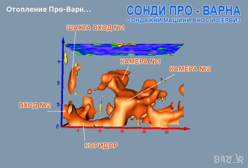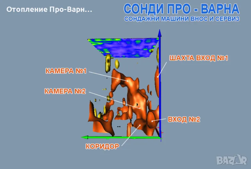 Професионалено 3D заснемане с електрорезистивен томограф до 60 метра за кухини, за входове и за метали.