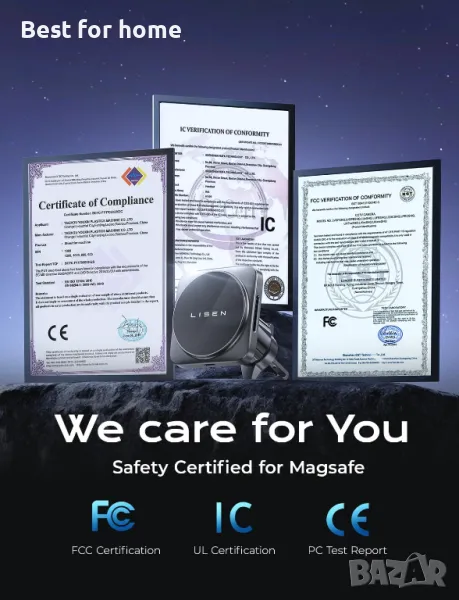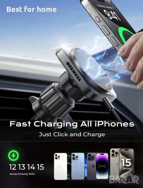Магнитно бързо зарядно/ стойка за телефон от М6 15W → Обява 48821616