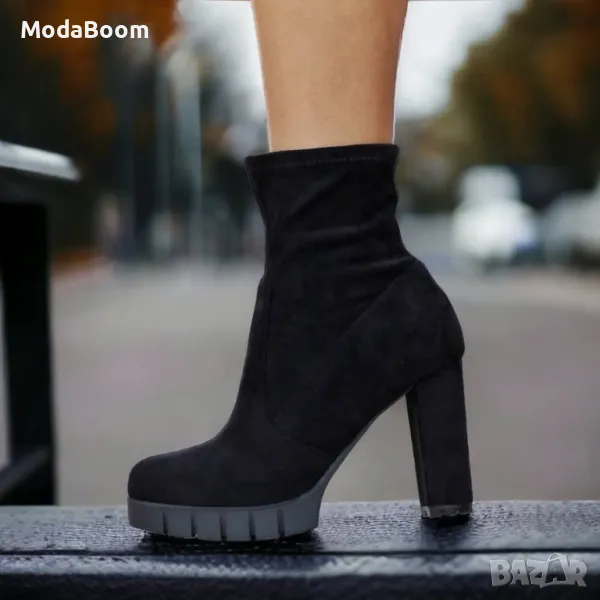 Боти на ток - Велур, снимка 1 - Дамски боти - 48821877 Боти на ток - Велур, снимка 2 - Дамски боти - 48821877 1/2