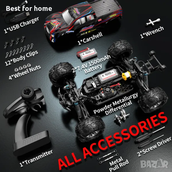 Цялото задвижване е метално, карета, предавки, полуоски, кормилни щанги и др 4х4