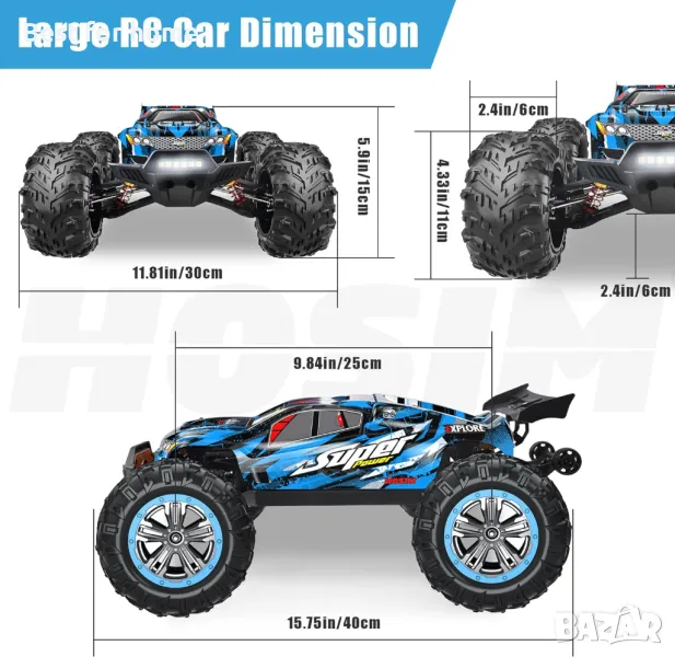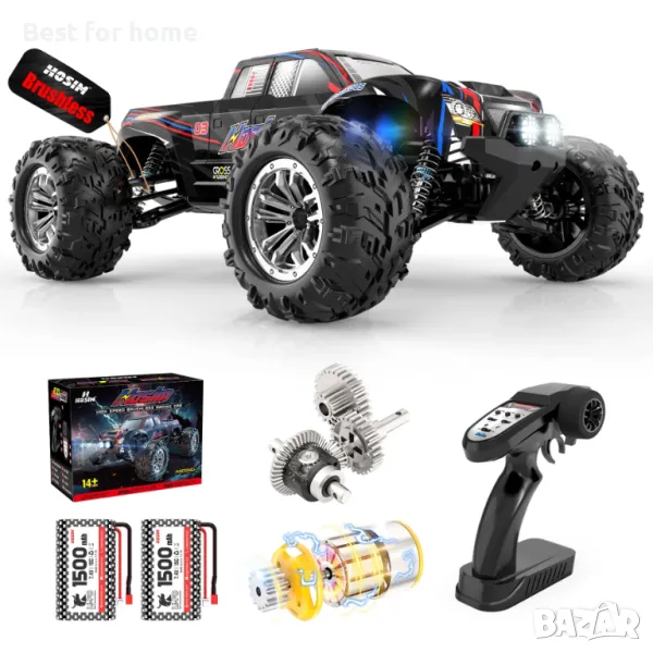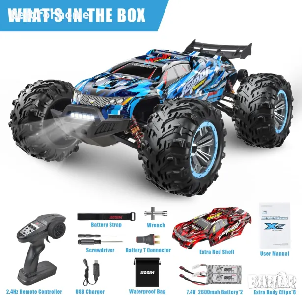 1 от Hosim 1:10 безчеткови RC коли за възрастни, 68+KMH дистанционно управление Бърза кола, 4WD всички терени Rc камиони Off Road Водоустойчиви хоби клас Голямо състезателно бъги Играчка Подарък Monster Trucks-Може да се надгражда до 3S батерия