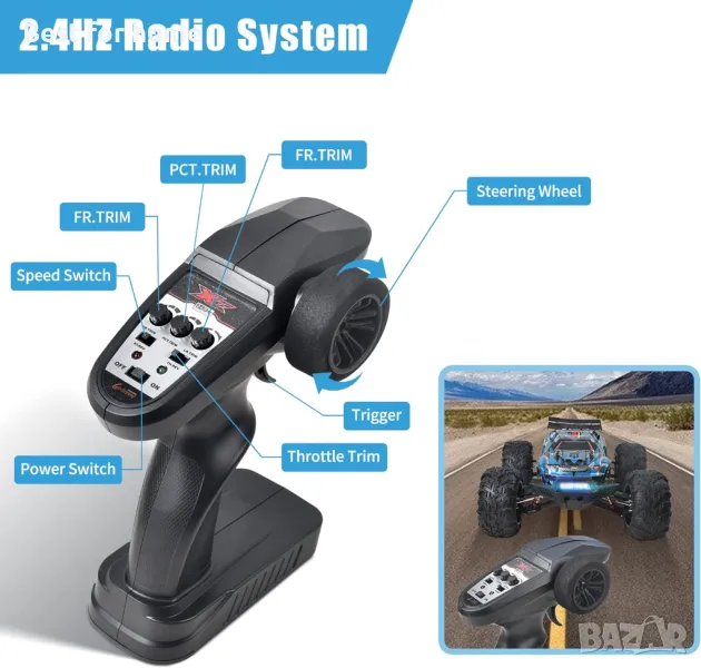 【СЕРВОУПРАВЛЕНИЕ С ВИСОКИ ВЪРТЯЩ МОМЕНТ】Кола с дистанционно управление за възрастни се предлага с 3KG серво с по-висока прецизност, по-добра фиксация, по-бърза реакция и по-меко ускорение. 30A ESC осигурява голяма мощност, въртящ момент и максимална скорост, за да изпрати състезателната кола да се състезава около пистата, парка или улицата. Включва RC предавател за чудовищен камион с обхват до 100 метра/328 фута и 2,4 Ghz. Разполага с чувствителни функции на управление, спирачка и газ. Можете да се състезавате с вашите приятели или деца едновременно.