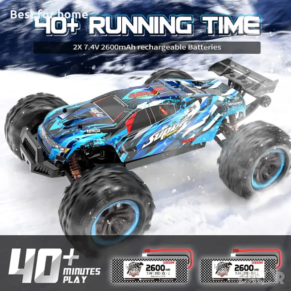 【Висок капацитет и дълъг живот】RC Buggy се предлага с 2 пакета батерии 7,4 V 2600 mAH. Увеличете времето за работа и ви позволи да отидете по-далеч! Тази играчка подарък RC кола за възрастни и момчета може да работи до 40 минути наведнъж! Карайте около пистата с нашия високоскоростен RC камион и усетете прилива на адреналин!
