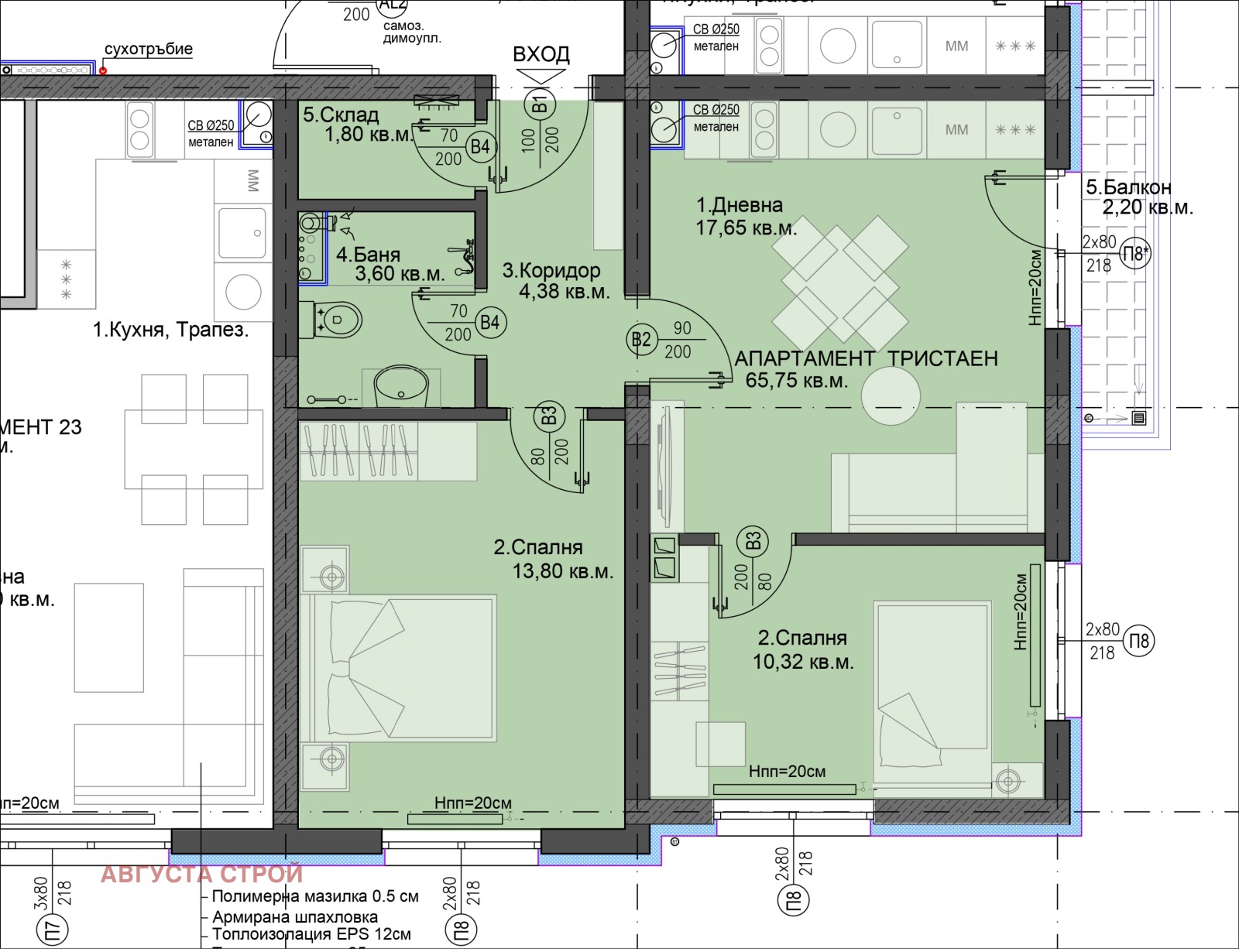 ДИРЕКТНО ОТ ИНВЕСТИТОР!БЕЗ КОМИСИОННА ОТ КУПУВАЧА! АКТ 15! СТРОИТЕЛНА ФИРМА продава разкошен двустаен (апартамент 40), който с една преградна стена в дневната може да се превърне в тристаен, без никакви компромиси. Чиста жилищна площ 66 кв.м, с общите части 75,59 кв.м. Дневната е с ъглови прозорци, което дава обилно осветление. При желание има възможност за преграждането й и отделяне на втора слънчева спалня/кабинет около 10 кв.м. Склад до входа - удобен и вместим. Хубаво изложение: дневна юг и изток, основна спалня - юг. Апартамент 40 се намира на осми етаж, като от прозорците му се разкриват гледки към Витоша. И наистина, въздушното течение от Банкя не е мит, въздухът тук е чист и постоянно се обновява. Акт 16- есента на 2026 г. Разсрочена схема на плащане. Сградата се строи от доказан инвеститор с осем построени и въведени в експлоатация сгради в София. Намира се на бул. Добринова скала срещу блок 523. Перфектен достъп по основни булеварди: бул. Царица Йоана, бул. Д-р Петър Дертлиев, бул. Сливница и Околовръстното. Наблизо са много от големите вериги, детски градини, училища, фитнес зали. Колелото на автобус 310 и на още няколко автобусни линии е на 2 минути от блока. Предстои изграждане на Метростанция Добринова скала, която е на пешеходно разстояние от сградата. тел.: 0877501722