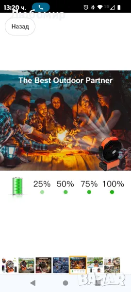 Вентилатор за къмпинг ELZO 20000 mAh, акумулаторен настолен вентилатор, USB