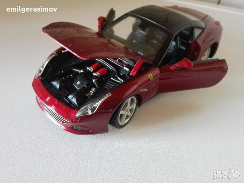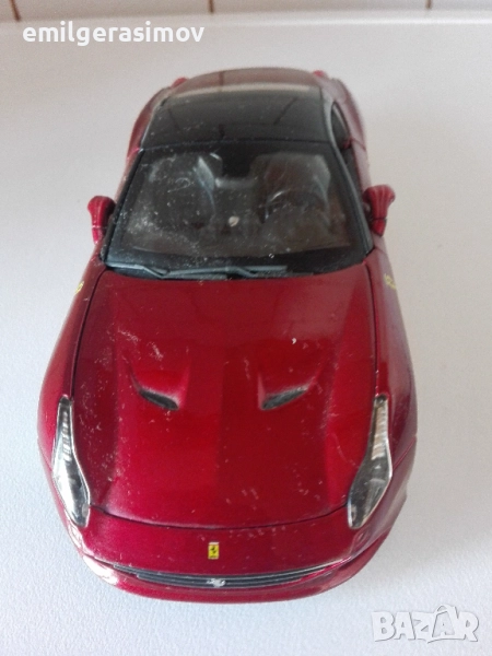 3.Метална количка Ferrari California на Burago. Мащаб 1:24. Отлично състояние. Без липси или дефекти. Цена 18 евро.