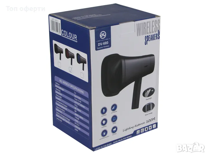 Соларният мегафон DV-680 е безжичен Bluetooth външен високоговорител, идеален за използване на открито.