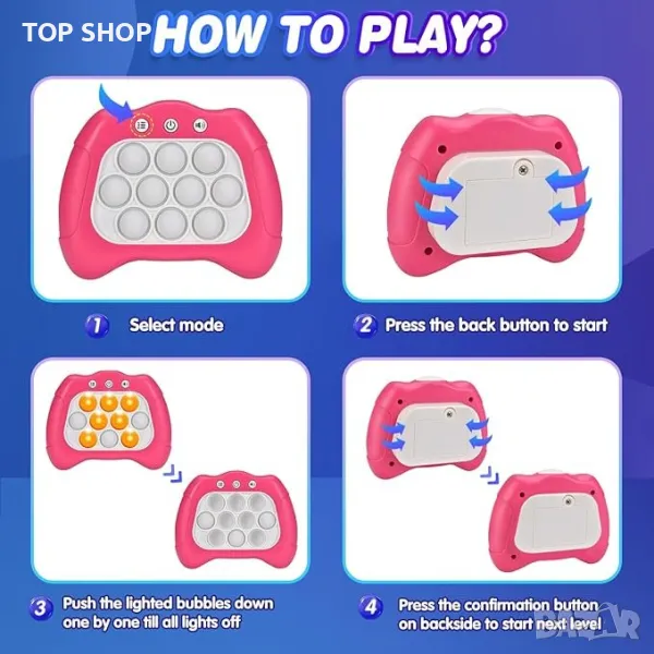 【ИНТЕРАКТИВНА ИГРАЧКА ЗА ОБЛЕКЧАВАНЕ НА СТРЕСА】: Нашата играчка за игра с натискане е отличен избор за семейни връзки и партита, тъй като играчите могат да укрепят емоционалните си връзки с бърза игра с натискане. Тази поп фиджет играчка е подходяща и за възрастни, като предоставя забавен начин за облекчаване на стреса и доставяне на радост.