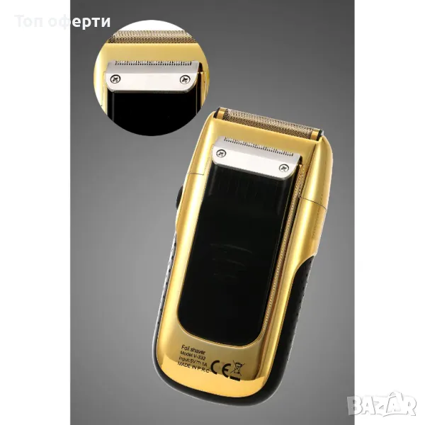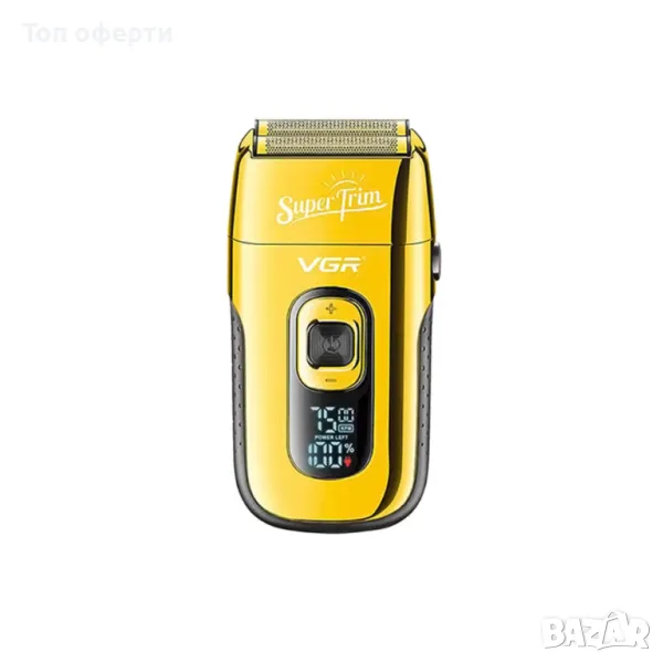 Професионална електрическа самобръсначка, самобръсначка и тример, VGR V-332, двойни ножчета, 3 регулируеми скорости, с цифров дисплей, 45 мм титаниево фолио, Li-ion 150 мин, 7500 об/мин, USB презареждане, златист метал
