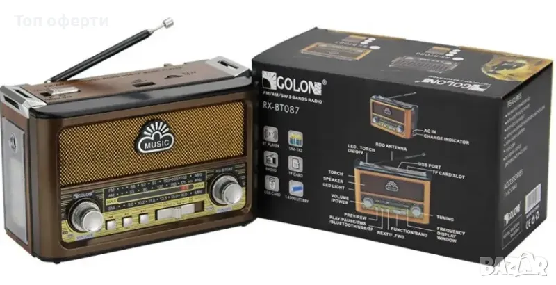 Радио ретро fmamsw usbmp3 блутут и фенер 220v ac батерии rx-bt087 → Обява 48825020