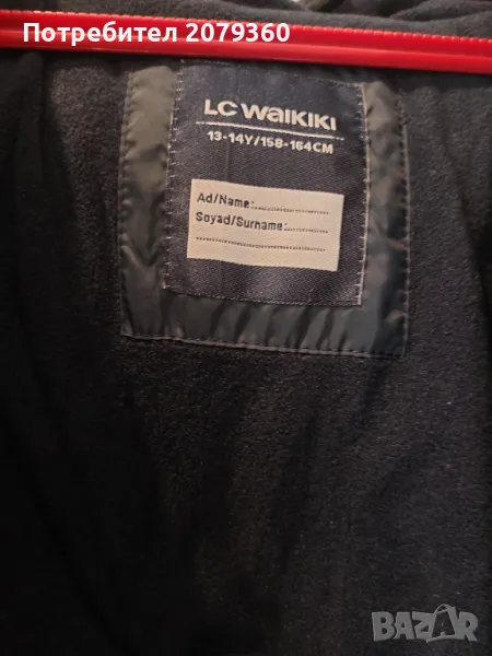 Чисто ново тъмно синьо яке за момче на lc waikiki, с етикет. Много топло, с полар от вътрешната страна, с качулка, която не се сваля. Размер по етикет 158-164, 13г.-14г., но моят син носеше същото и на 12г.