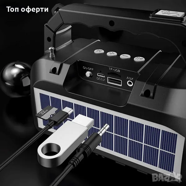 Мощен високоговорител, интегрирано FM радио, включително слънчево зареждане, фенерче, MP3
