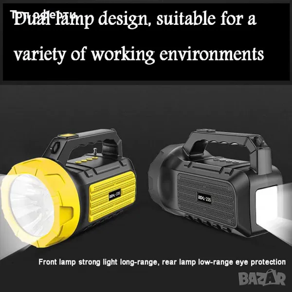 Обхват на осветление до 500 метра, 5W Bluetooth високоговорител, 1200mAh акумулаторна литиева батерия.