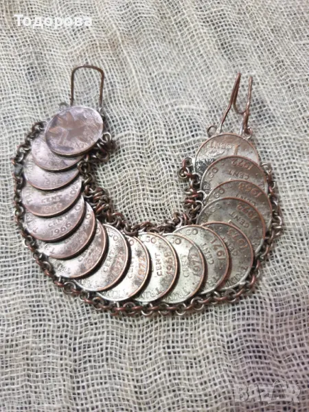 Гривна от 17 броя монети - 1 цент от Тринидад-1966 - 7 година. Дължина - 18 см.