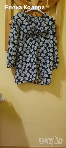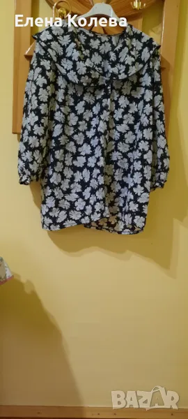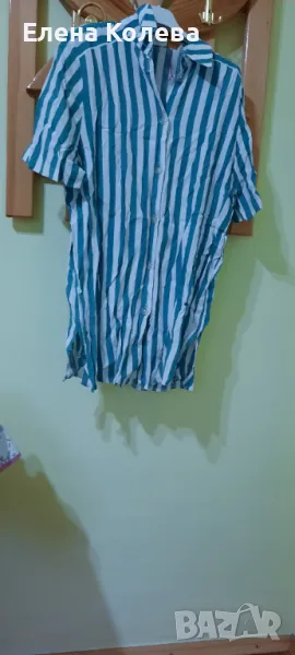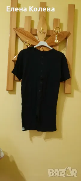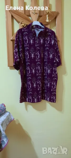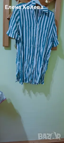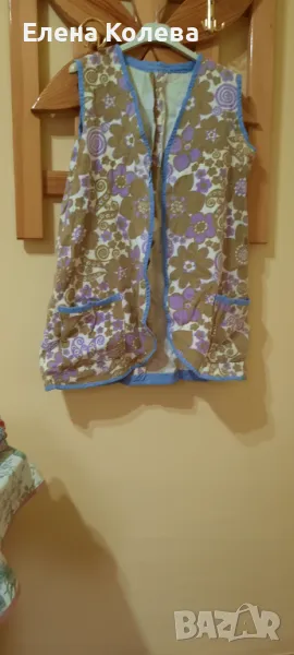 Халат без ръкави; дамска блуза – вишнева, полиестер (XL); риза – зелено рае (40); дамска блуза – черно бяла; гащеризон – черен, трико.