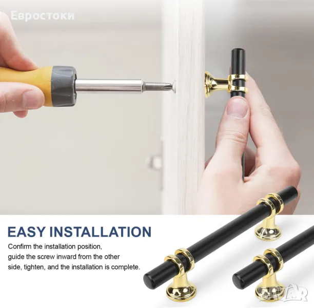 Лесен монтаж: потвърдете позицията за монтаж директно върху мебелите, след това помогнете на дръжките на шкафа, насочете винта от другата страна навътре, затегнете го и монтажът е завършен