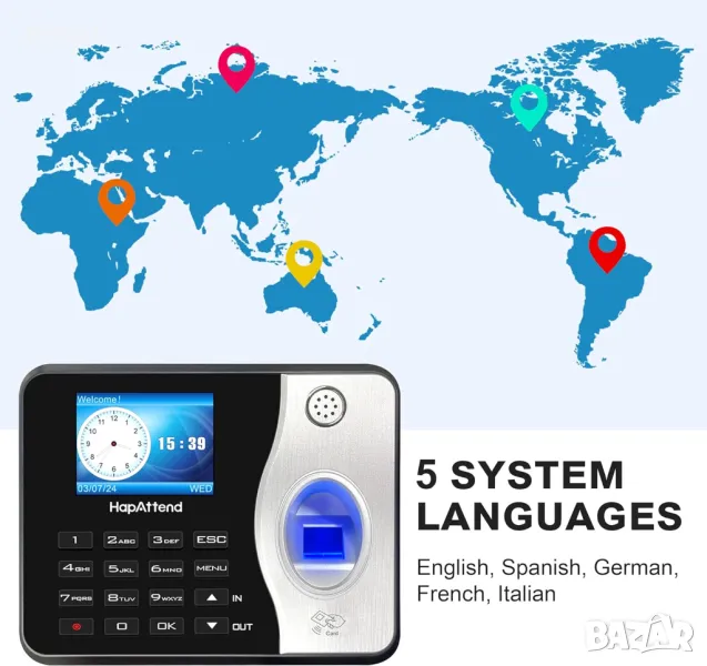 HapAttend Самостоятелна машина за присъствие, с 5 RFID карти, Н3
