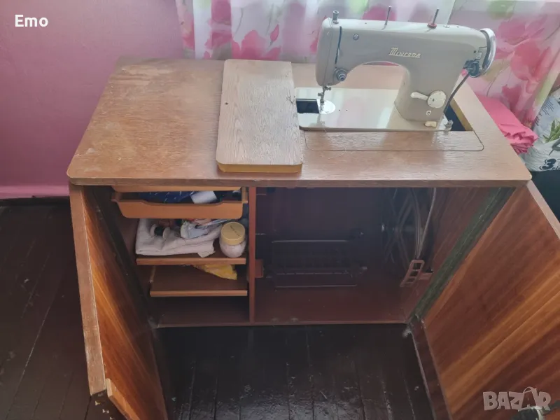 Продавам шевна машина Minerva. Цял комплект със шкаф, във който се прибира с отваряеми вратички. Не й разбирам как се шие, затова не мога да кажа дали работи нормално. Има си всичко. Колелото на шевната машина се върти и мърда иглата (до тук ми стигат познанията).