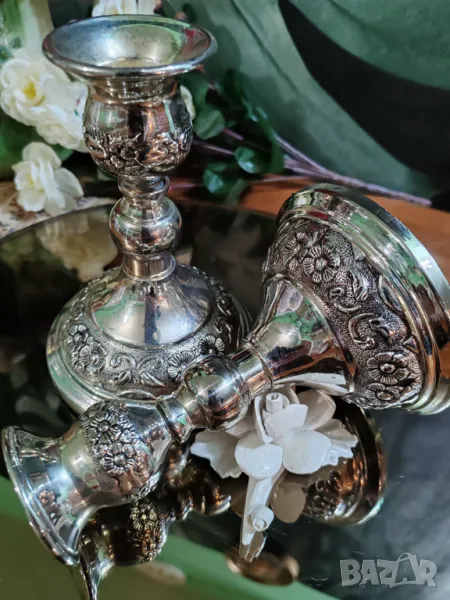 Комплект изключително красиви свещници с богати, изящни гравюри. → Обява 48827486