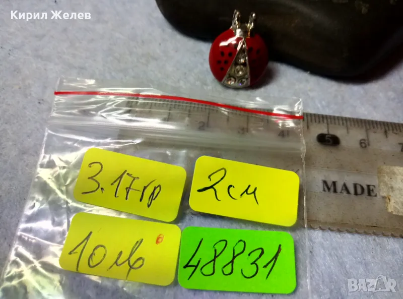 СИМПАТИЧНА СРЕБРИСТА ЕМАЙЛИРАНА ФИГУРАЛНА АРТ БРОШКА - КАЛИНКА с ФАСЕТИРАНИ КРИСТАЛИ 48831