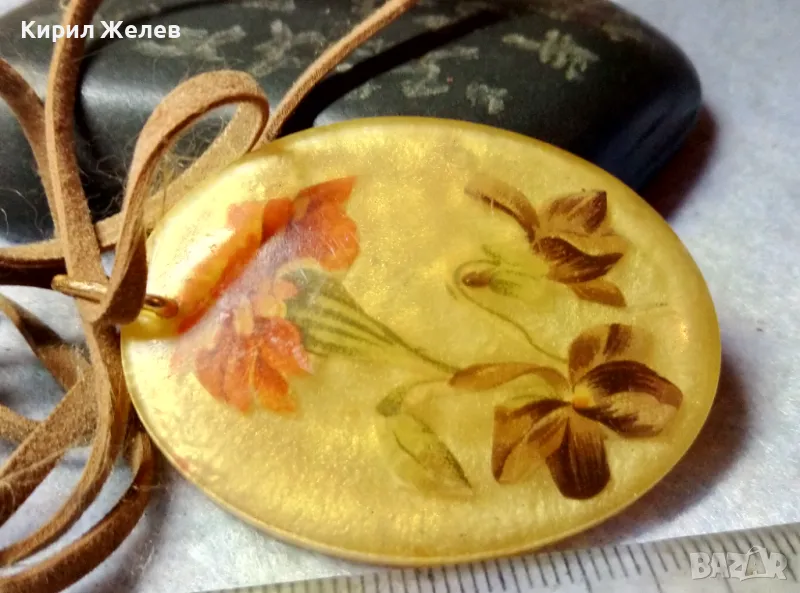 ОЧАРОВАТЕЛЕН СТАР ФЛОРАЛЕН ВИНТИДЖ МЕДАЛЬОН СИНТЕТИЧА Арт СМОЛА с ВЕЛУРЕНО ШНУРЧЕ 48759 → Обява 48828228