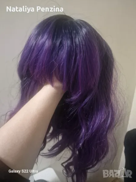 Лилава вълниста перука с бритон → Обява 48828728